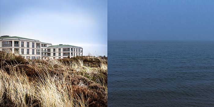 Nach dem Check-in hatte ich mich zunächst auf das Bett meines Zimmers in der dritten Etage gelegt, auf die Nordsee geschaut und dem Meeresrauschen zugehört. Und dem Wind, der über die Dünengräser vor dem Hotel strich. Sonst war nichts zu hören, nur Wind und Wellen. Und wenn das Wetter auch nicht so richtig mitspielte, wie ich es mir erhofft hatte (leider kaum Sonnenschein, stattdessen viel Nebel und tiefhängende Wolken): Schön war es trotzdem! Und zu schön, um im Zimmer zu bleiben, so gemütlich das Bett auch war. Wind und Wellen wollten erkundet werden:
