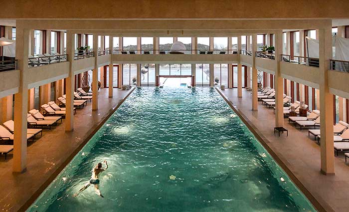Nach meiner Rückkehr vom Lister Ellenbogen hieß es für mich vor dem Abendessen: Ab in den Pool. In den ganzjährig beheizten Meerwasser-Innen-und-Außen-Pool, wohlgemerkt! Der Pool des A-ROSA Sylt ist der größte und schönste Hotel-Pool der Insel. Mit direkter Meerwasser-Zuleitung über eine 300 Meter lange Pipeline von der Nordsee unter Watt und Dünen hindurch bis ins Hotel. Wahnsinn!