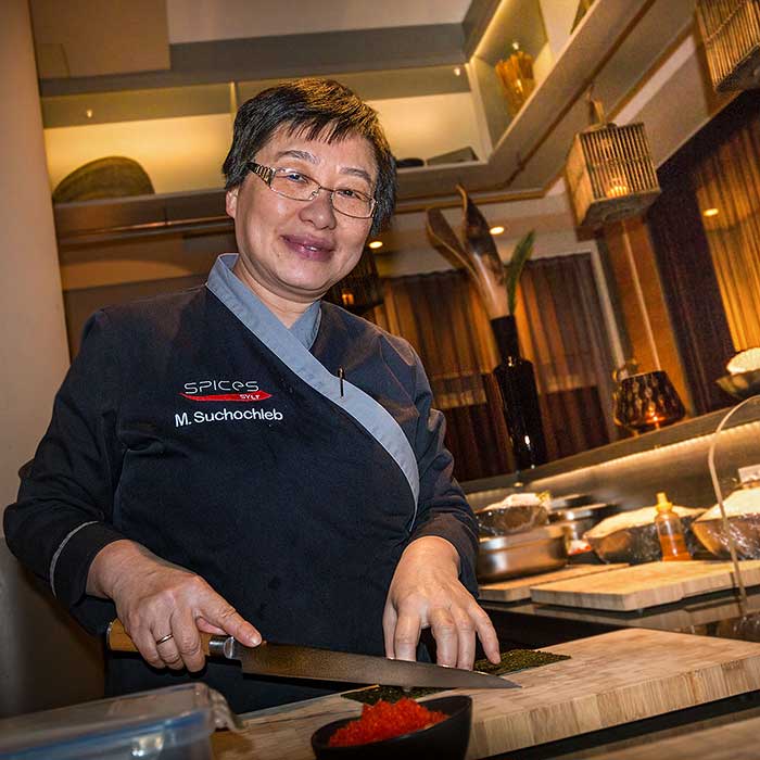 2010 wurde das A-ROSA Sylt eröffnet, und Sushi-Meisterin Suchochleb ist von Anfang an dabei. Bei der allgemein üblichen Fluktuation des Personals in deutschen Hotels ist das ein gutes Zeichen. Seit bald acht Jahren fühlt sich Frau Suchochleb ausgesprochen wohl im A-ROSA Sylt. Man merkt ihr den Spaß an der Arbeit an. Und die Freude darüber, auf Sylt leben und arbeiten zu können.