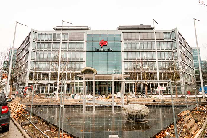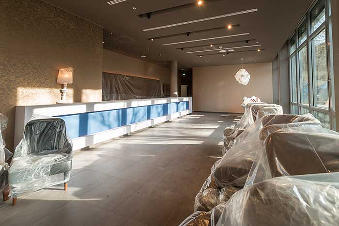 Am 22. November hatte ich die Gelegenheit, mir die Baustelle des neuen Steigenberger Hotel München anzuschauen. Es wird auf allen Etagen gehämmert, geklopft, gesägt, gebohrt, gemacht. Draußen an der Glasfassade hing an diesem Tag noch der rote Schriftzug eines Versicherungsunternehmens, dem die Immobilie gehört. Steigenberger (Deutsche Hospitality) ist Pächter und baut das Gebäude schon seit zwei Jahren um. In den kommenden Tagen soll das Logo abgebaut werden. Hotel-Team und die Handwerker geben richtig Gas, denn noch dieses Jahr soll eröffnet werden (Soft Opening schon Anfang Dezember).