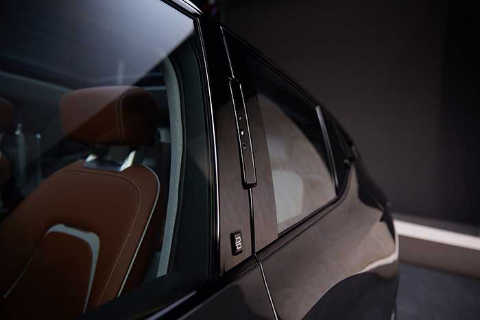 The new SUV leverages Electric Vehicle architecture to maximize space. A flat floor and absence of a center console convey openness to all cabin occupants. Individually adjustable rear seats provide sofa-like comfort and luxury akin to a premium lounge.