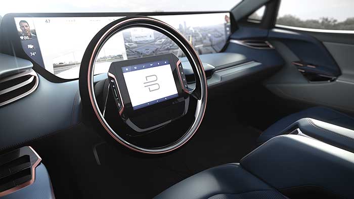 BYTON is equipped with multiple screens including a Shared Experience Display replacing the central console in traditional cars. A Driver Tablet and two display screens on the rear-seat entertainment system integrate other content and features as part of the lounge.