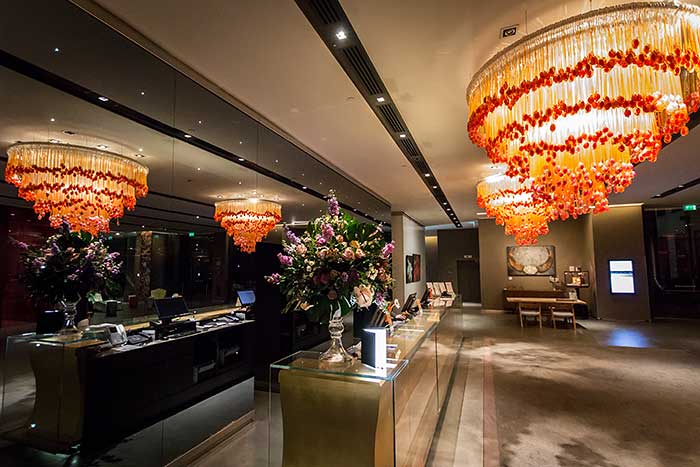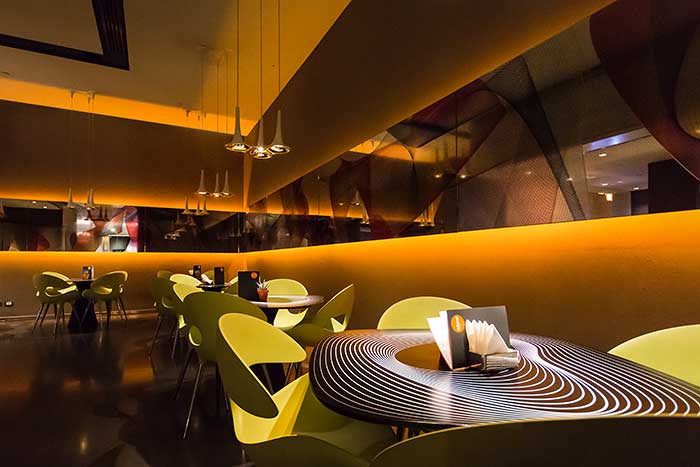 Kräftige Farben und dunkle Spiegelwände harmonieren mit akzentuierten Lichtpunkten und sanften Pastelltönen. Farbenfrohe Design-Hängelampen von Jacopo Foggini, Totenkopf-Möbel, Beton-Böden und eine von Karim Rashid designte Bar: Alles sehr lebendig, kontrastreich und phantasievoll, ohne überladen oder kitschig zu wirken. Alles sehr stimmig, wohl durchdacht und mit sehr viel Stil.