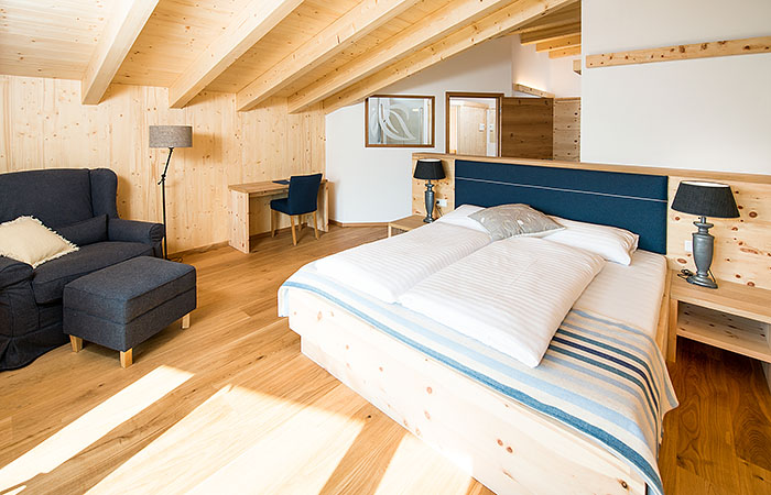 “Where things are still authentic” is the motto of the house and it sounds like a promise. The owner families Herzog and Blumenkamp make every effort to fulfill this pledge: 49 beautiful organic and nature rooms, nature suites and family rooms in solid wood construction, equipped with oak wood floors, pine wood furniture, “Villgrater sheep wool” beddings and wool fabrics that promise a deep sleep. The marvelous sense of comfort invites you to stay. It smells healthy when you enter the rooms and the unobtrusive stone pine-scented regulates your blood circulation while you sleep. It “calms you down”; and that’s what you want on holidays, isn’t it? I have rarely slept so well like here.
